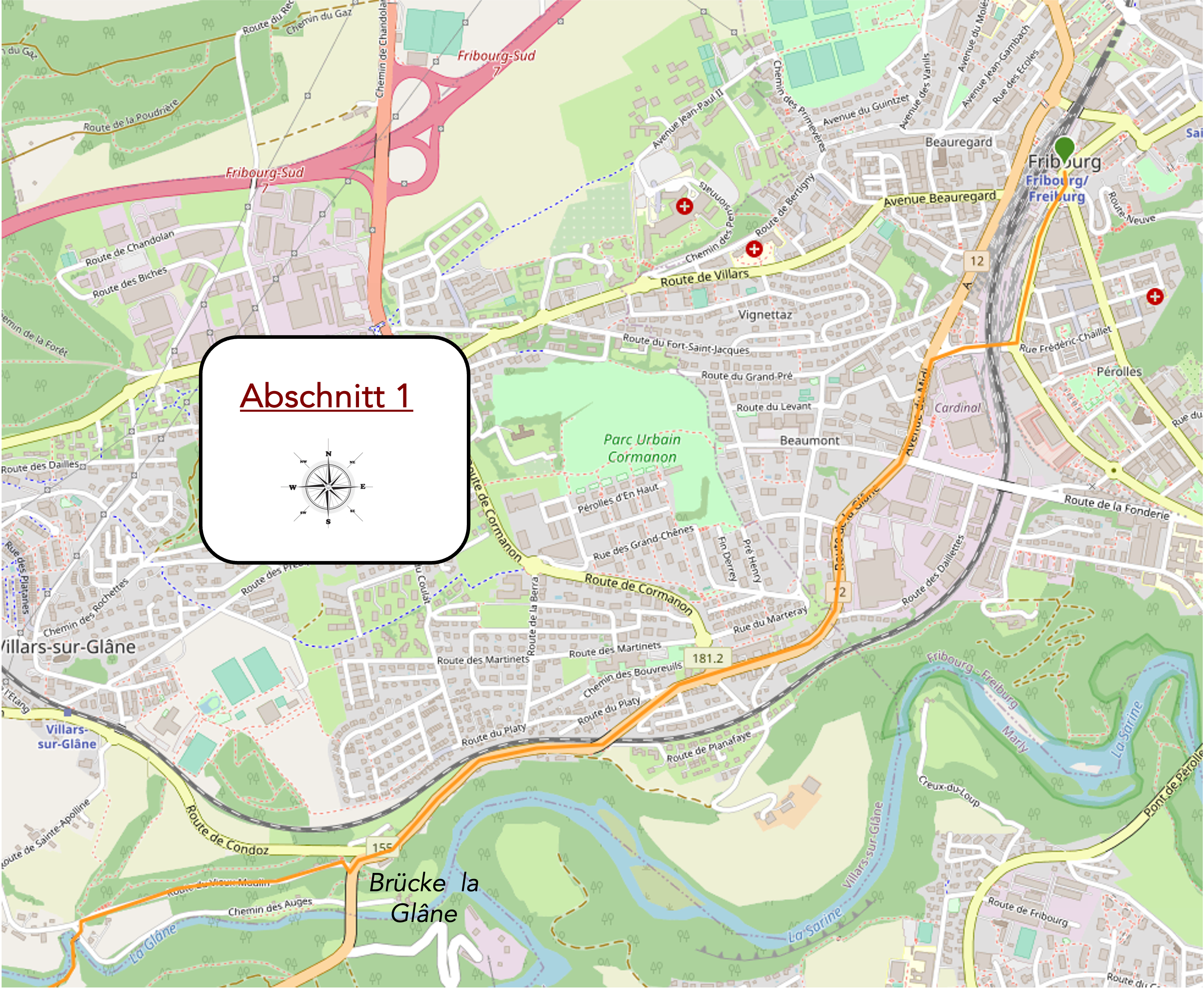 Abschnitt 1: Die lange Durchquerung der Stadt Freiburg