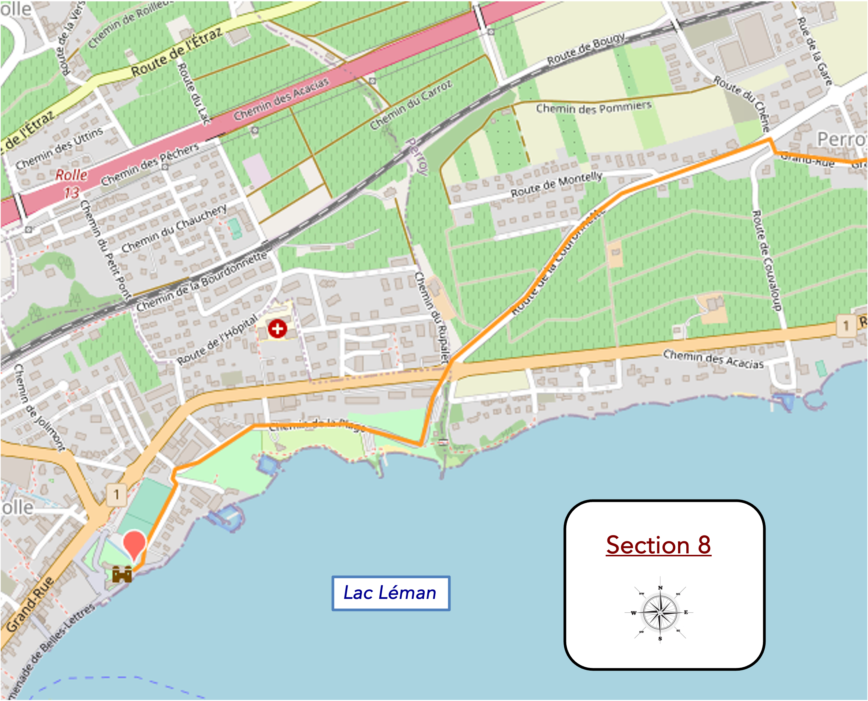 | Puis, la Via Jacobi, dans un élan presque solennel, rejoint la Route suisse, aux portes de Rolle. |